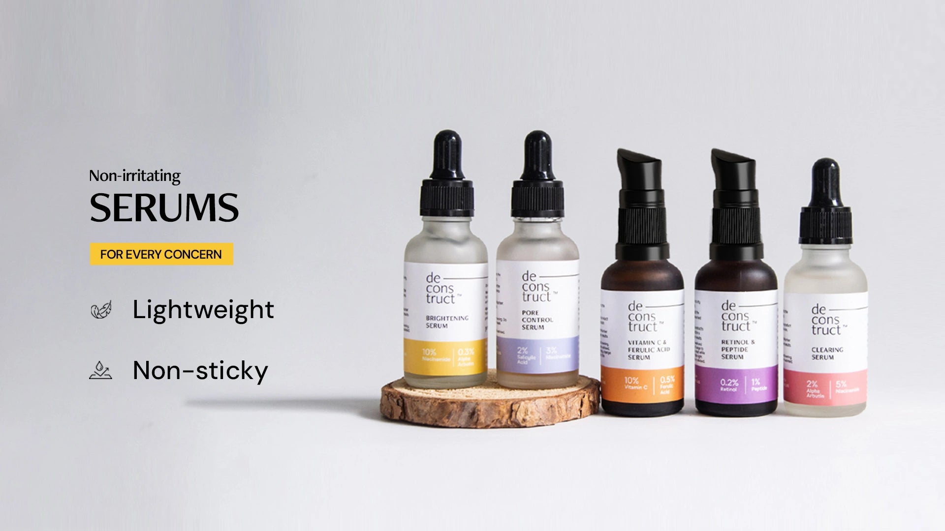 Face serums are undoubtedly one of the most effective ways to address specific skin concerns. Packed with concentrated active ingredients, they deliver real results. Just make sure to choose a serum considering your skin’s unique needs. At Deconstruct, we offer a range of India’s best face serums, each formulated with science-backed ingredients that cater to different skin types and concerns. Explore our collection and take the first step toward healthier, more balanced skin. Let your skin thrive with the right face serum for you!