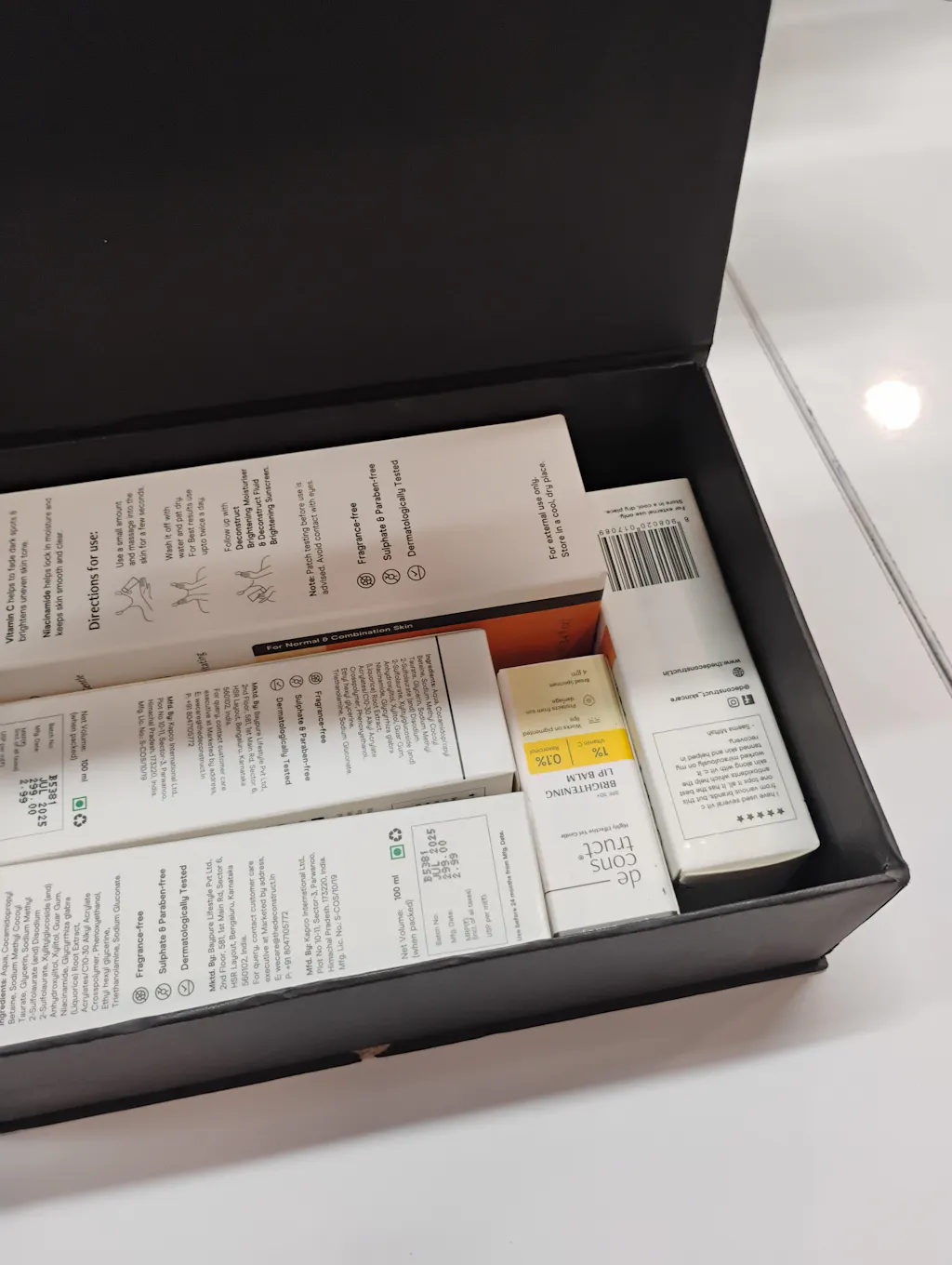 Thank you for shopping at The Deconstruct. We have made all our products with utmost care and deep scientific knowledge with an understanding of most skin types. If you are still not completely satisfied with a purchase, please reach out to us within 48 hours and we will put all our efforts to help you. Kindly make an unboxing video for easy reference.