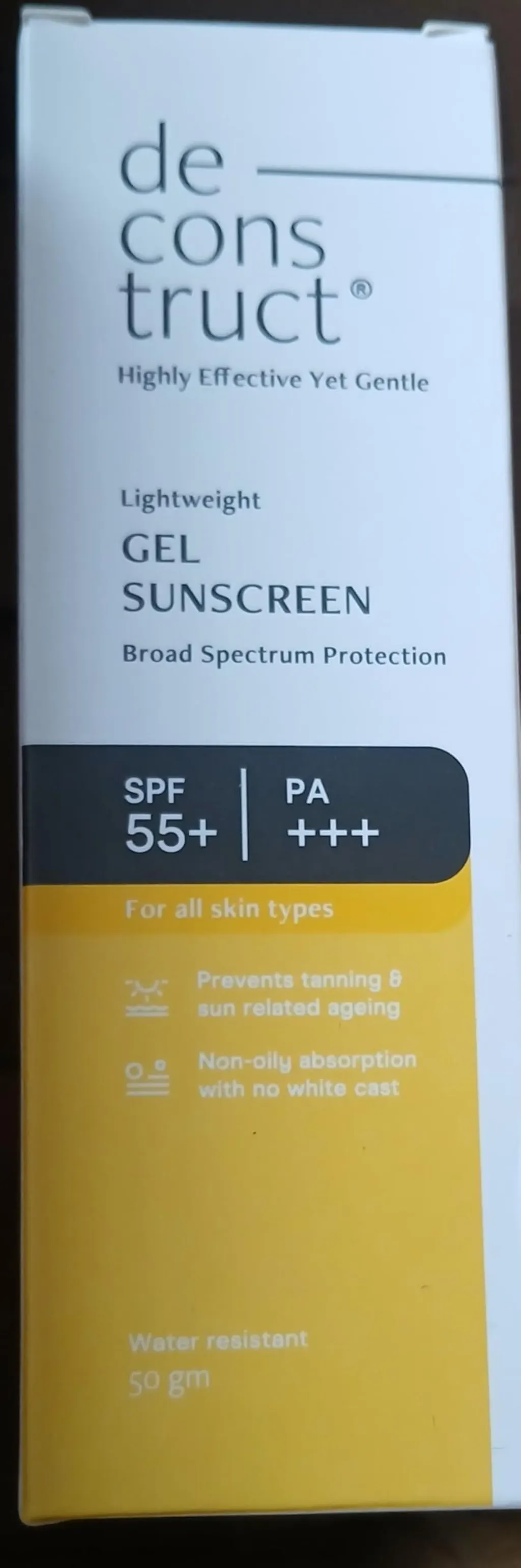 Deconstruct’s Gel Sunscreen is a lightweight, fast-absorbing gel sunscreen with an airy feel that stays comfortable on skin while providing high-level broad-spectrum protection against UVA and UVB rays. It delivers in vivo tested SPF 50 and PA++++, photostable protection, with the power of 4 new-gen UV filters - Uvinul A Plus, Tinosorb S, Tinosorb M, and Uvinul T 150 - for durable, reliable UVA + UVB coverage. It helps prevent sun damage, tanning, and premature signs of aging, and its non-greasy, non-sticky texture blends easily without leaving a white cast, making it ideal for daily use. Suitable for all skin types and especially oily skin, it offers effective sun protection without clogging pores as well as all day oil control for a fresh look.
