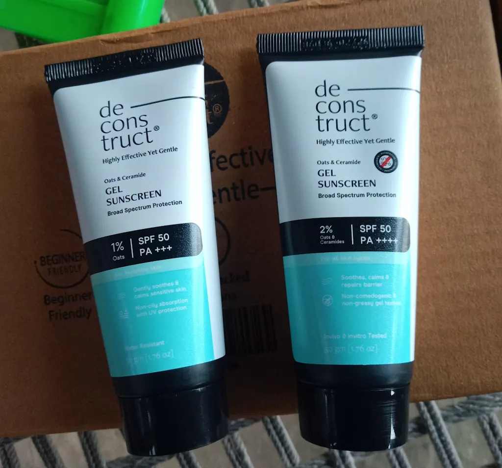 DECONSTRUCTING Oats and Ceramide Gel Sunscreen for Sensitive Skin - SPF 50 PA++++ | Barrier Repair & Soothing Care | Photostable Sunscreen with 4 New Gen UV Filters | Long Lasting | In-Vivo Tested